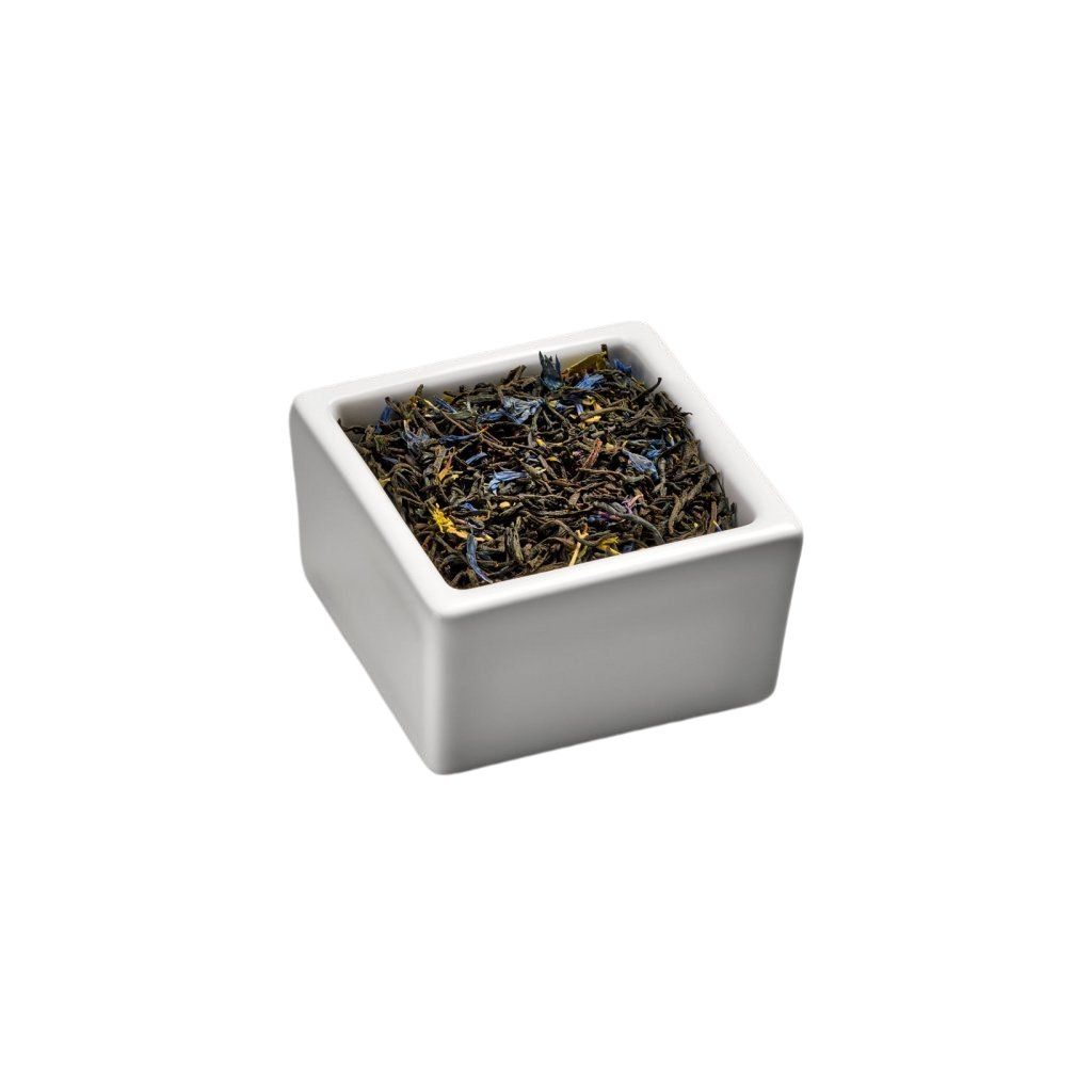 Organický černý čaj s modrými květy. Jemná směs nejvybranějších cejlonských čajů, lahodně provoněna i organickým esenciálním bergamotovým olejem a grepovým aroma, obohacena o lístky chrpy polní. Jedná se o přímý dovoz z plantáží, a proto je aroma velmi unikátní a výrazné, a to bez použití umělých aromat.